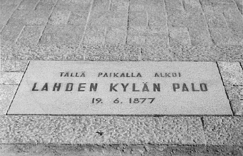Kesäkuun 19. päivänä 1877 Lahtea kohtasi onnettomuus: lähes koko kylä paloi maan tasalle. Talot, aitat, navetat, tallit ja kauppaliikkeet tuhoutuivat. Palo sai alkunsa Marolan talosta, jonka paikalla on nykyisin torilla Marolankadun ja Aleksanterinkadun kulmassa muistolaatta.
