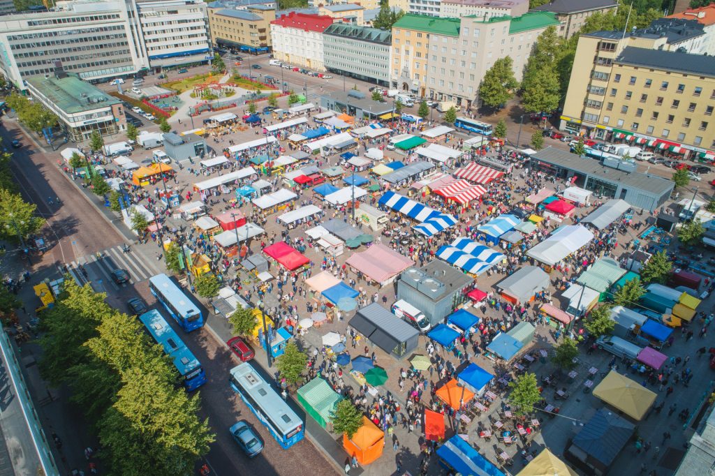 Ilmakuva torin markkinahumusta vuonna 2019. Kuva: Lahden kaupunki, Lauri Rotko.