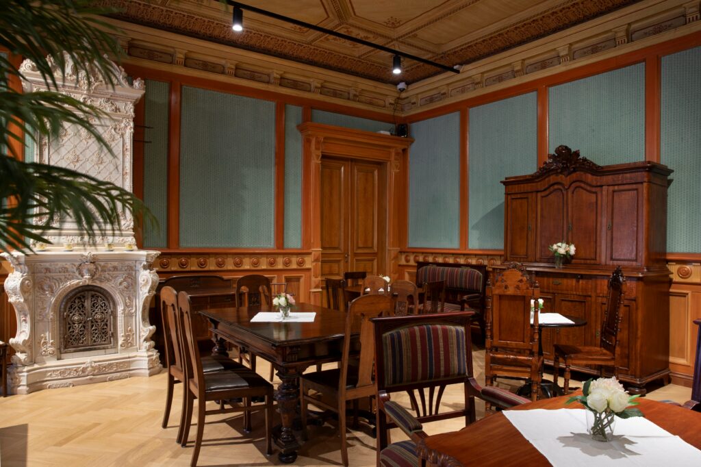 Ensimmäisessä kerroksessa sijaitsevassa salongissa voi entisöidyn kartanohuoneen puitteissa järjestää pieniä tilaisuuksia ja kahvituksia. Tilaan on tuotavissa esitystekniikkaa ja sinne voi asettaa tarvittaessa joko pöytiä tai istumakatsomon. Tila on varattavissa yksityistilaisuuteen vain aukioloaikojen ulkopuolella.