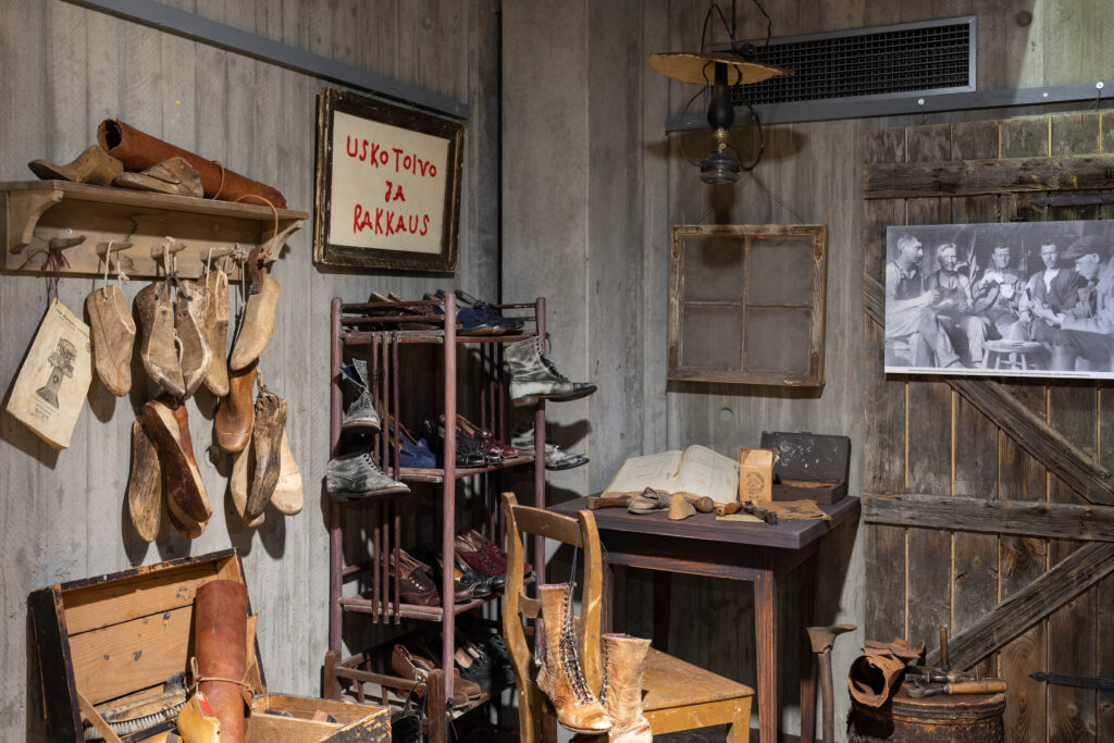 Näyttelyssä seikkailee hahmoja, joihin voi törmätä myös teatterin lavalla. Osa hahmoista on puettu aitoihin museoasuihin. Tyrmän ovien vieressä voi saada käsityksen poliisin työskentelystä nuoressa kaupungissa. Lavastettu suutarinverstas Reunanpalstan sydämessä on skenografi Minna Välimäen käsialaa. Hän iloitsee erityisesti aidoista kaupungintalon ja siellä sijainneen poliisiputkan ovista: